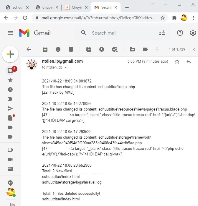 Sau khi chương trình phục hồi lại những nội dung thay đổi hay xóa những tập tin được tải lên hệ thống trái phép, với những nội dung đã được xử lý và lưu vào logfile được chương trình gửi đến email được cài đặt trước đó giúp quản lý, đơn vị quản lý hệ thống sớm biết được hệ thống bị xâm nhập.