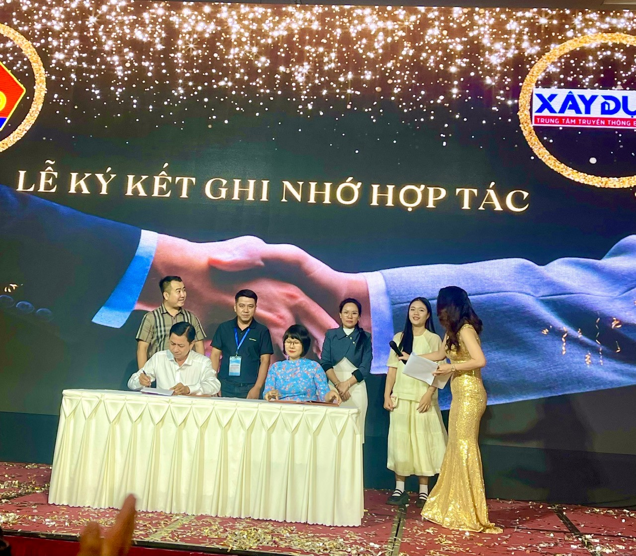 Ông Lê Thành Phiêu - Chủ tịch Hội Xây dựng ký hợp tác với bà Nguyễn Thị Thùy Dương,Trưởng đại diện Văn phòng phía Nam, Trung tâm truyền thông Báo Xây dựng Việt Nam – Bộ Xây dựng