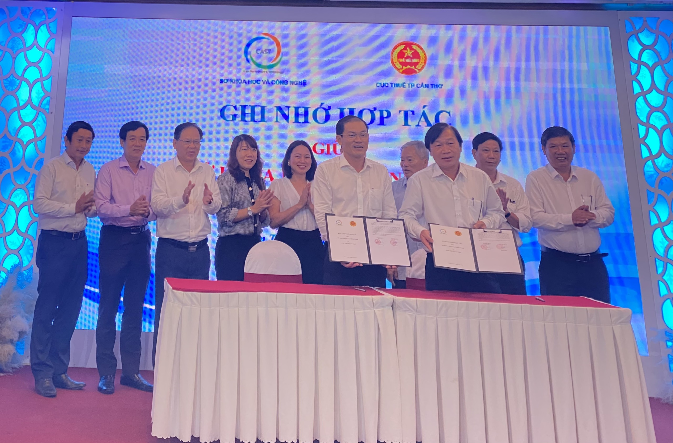 Ông Ngô Anh Tín – Giám đốc Sở Khoa học và Công nghệ TP. Cần Thơ và Ông Đỗ Đấu Tranh – Phó Cục trưởng Cục thuế TP. Cần Thơ ký kết chương trình phối hợp hỗ trợ Doanh nghiệp KH&CN và doanh nghiệp thành lập Quỹ phát triển KH&CN.