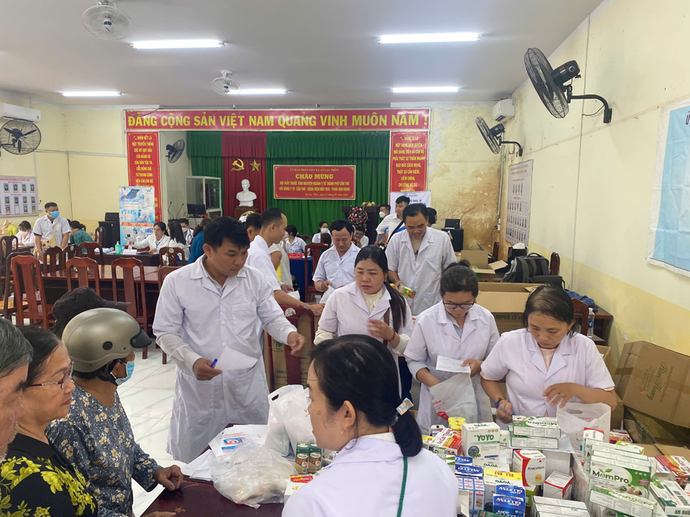 Buổi sáng cùng ngày, đoàn y bác sĩ đến từ Sở Y tế, Hội Đông y, Hội Y học, Bệnh viện Mắt ViSi, Trung tâm Y khoa Vạn Hạnh tổ chức khám bệnh, cấp thuốc miễn phí cho 200 bà con tại Trụ sở Đảng ủy xã An Lạc Thôn.