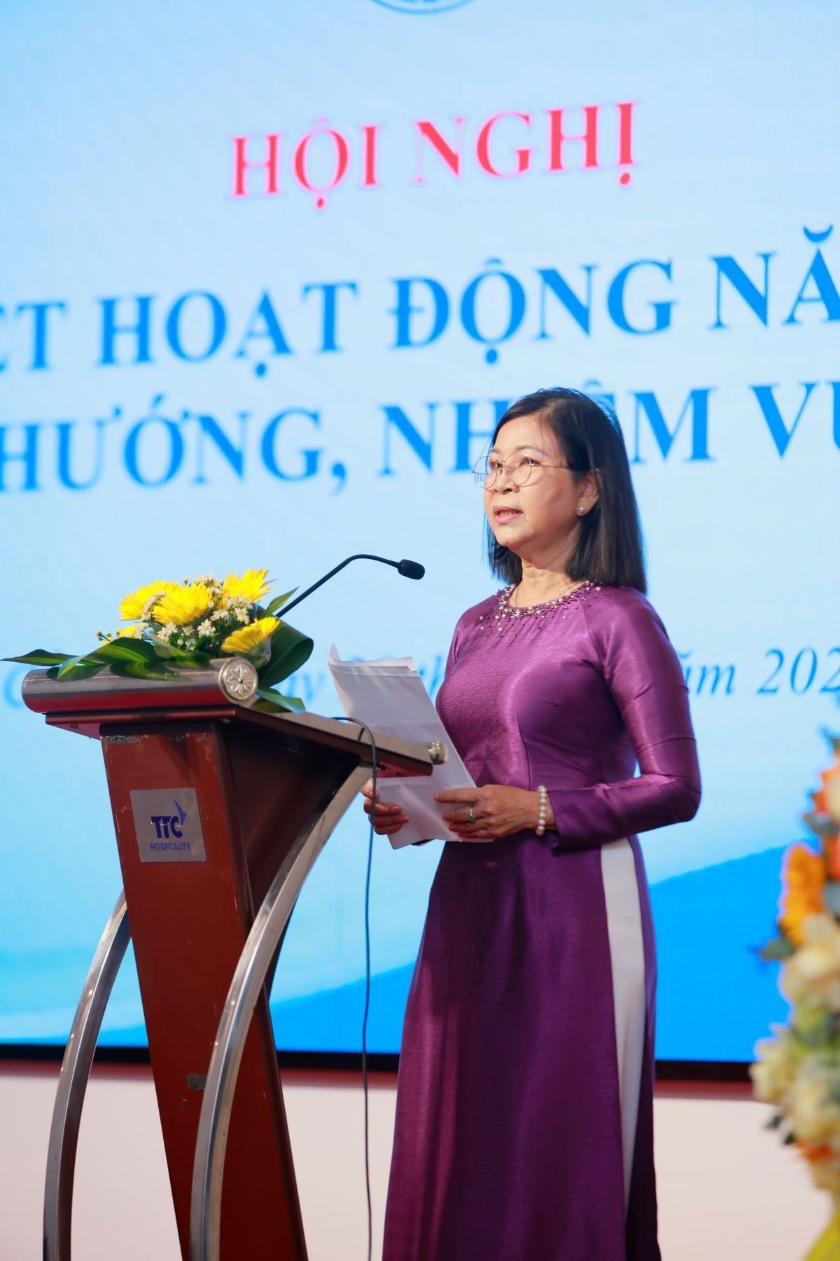 Bà Nguyễn Thị Kiều, Phó Chủ tịch Liên hiệp các Hội Khoa học và Kỹ thuật phát biểu tại Hội nghị