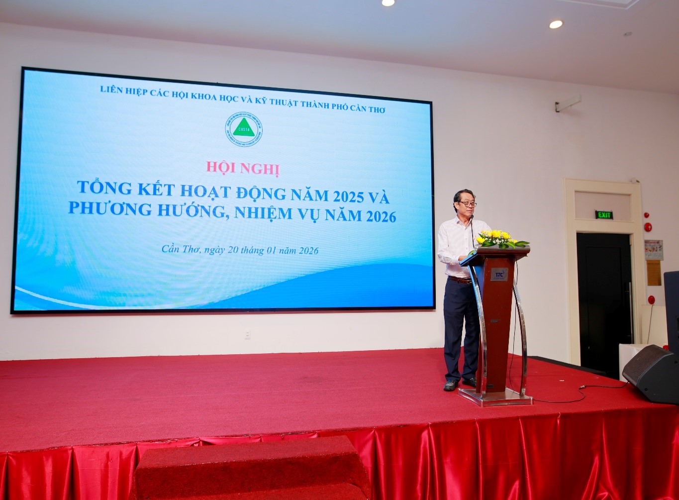 Ngày 20/1/2025, Hội nghị tổng kết hoạt động năm 2025 và phương hướng, nhiệm vụ năm 2026 của Liên hiệp các Hội Khoa học và Kỹ thuật thành phố Cần Thơ diễn ra long trọng tại khách sạn TTC thành phố Cần Thơ. Tham dự có ông Nguyễn Văn Khởi, Thành ủy viên, Phó Chủ tịch UBND thành phố Cần Thơ, ông Nguyễn Thanh Sơn Phó trưởng Ban Tuyên giáo và Dân vận Thành ủy, bà Lê Mỹ Hạnh, Phó Giám đốc Sở Khoa học và Công nghệ, ông Trần Ngọc Nguyên, nguyên Chủ tịch Liên hiệp Hội, bà Nguyễn Thị Kiều, Phó Chủ tịch phụ trách Liên hiệp Hội, đại diện lãnh đạo Ủy ban MTTQ Việt Nam thành phố Cần Thơ cùng các nguyên lãnh đạo, các thành viên Ban chấp hành Liên hiệp Hội, lãnh đạo Hội thành viên, đại diện các sở ban ngành, các trung tâm trực thuộc, viện trường, các tác giả đạt giải Hội thi sáng tạo kỹ thuật và cơ quan báo đài dự và đưa tin.