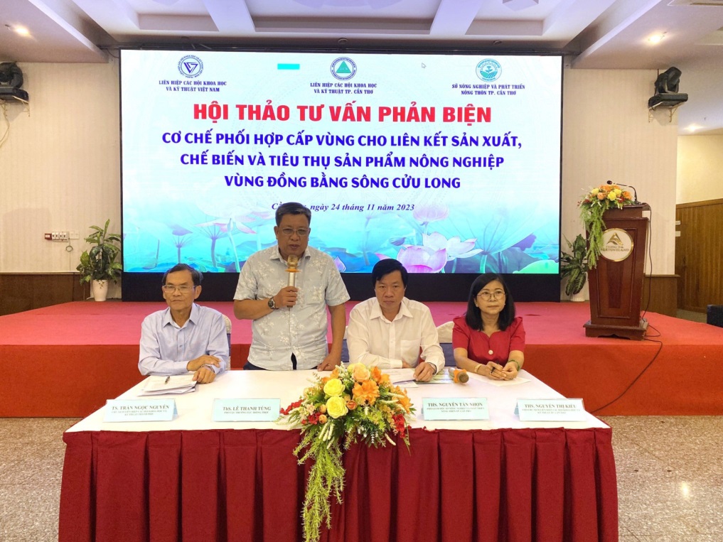 Liên hiệp Hội Cần Thơ phối hợp cùng với Liên hiệp Hội Việt Nam, Sở Nông nghiệp và Phát triển nông thôn tổ chức Hội thảo tư vấn phản biện cấp vùng: “Cơ chế phối hợp cấp vùng cho liên kết sản xuất, chế biến và tiêu thụ sản phẩm nông nghiệp vùng Đồng bằng sông Cửu Long tại thành phố Cần Thơ”, nhằm mục tiêu đánh giá thực trạng hoạt động phối hợp đồng thời đề xuất giải pháp thúc đẩy hoạt động sản xuất, chế biến, tiêu thụ sản phẩm nông nghiệp toàn vùng Đồng bằng sông Cửu Long (ĐBSCL), hướng tới một nền kinh tế nông nghiệp phát triển với thành phố Cần Thơ là trung tâm động lực của vùng. Tham dự hội thảo có đại diện lãnh đạo Cục Trồng trọt, Văn phòng Điều phối nông nghiệp và nông thôn ĐBSCL, các sở ban ngành, viện trường trên địa bàn thành phố, Liên hiệp Hội, Sở Nông nghiệp và Phát triển nông thôn, Sở Khoa học và Công nghệ, Sở Công thương, Chi cục Phát triển nông thôn, Chi cục Trồng trọt – Bảo vệ thực vật, các Hợp tác xã, doanh nghiệp sản xuất, chế biến, kinh doanh nông sản các tỉnh vùng ĐBSCL.