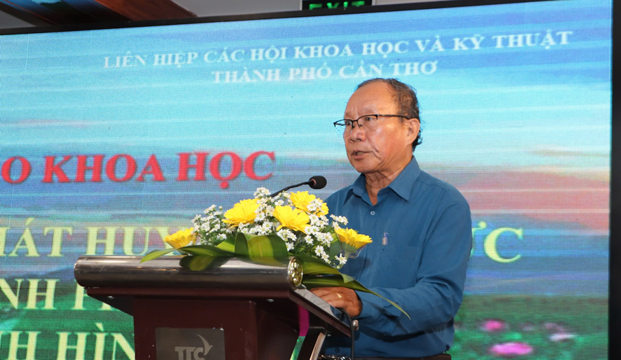 Ông Trịnh Công Lý, Phó Chủ tịch Liên hiệp Hội Khoa học Kỹ thuật thành phố Cần Thơ phát biểu khai mạc hội thảo