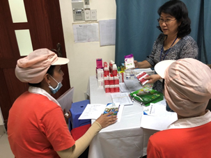 Công nhân được nhận thuốc miễn phí sau khi khám sức khỏe. |