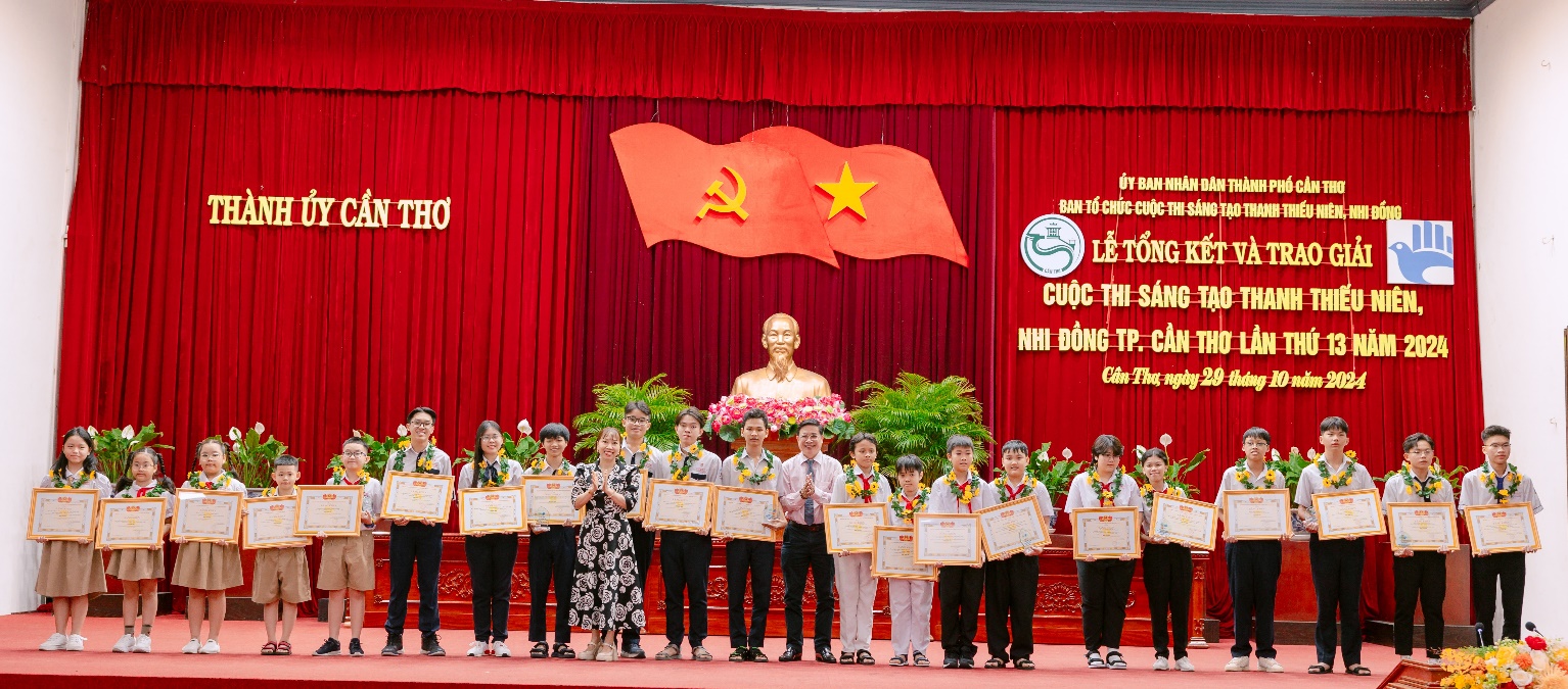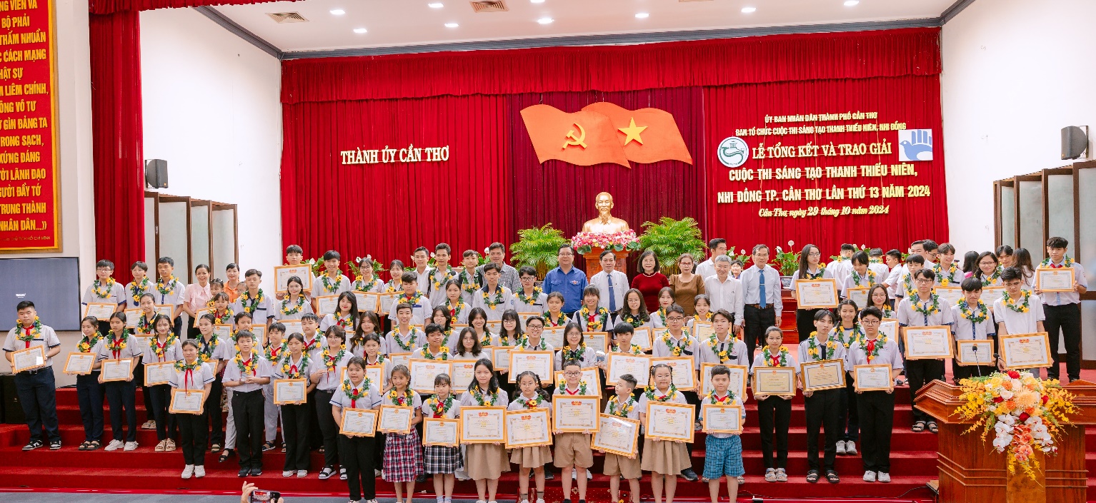 Cuộc thi Sáng tạo thanh thiếu niên, nhi đồng là hoạt động diễn ra định kỳ hàng năm, đã qua 13 lần tổ chức, thu hút nhiều đối tượng tham gia, từ học sinh các trường tiểu học, THCS đến THPT tạo thành phong trào thi đua sáng tạo sôi nổi trong cộng đồng thanh thiếu niên, nhi đồng. Sáng ngày 29/10/2024, Lễ Tổng kết và trao giải cho 42 đề tài đạt giải đã diễn ra trong không khí trang trọng và hân hoan. Liên hiệp các Hội Khoa học và Kỹ thuật TP. Cần Thơ (Thường trực Ban Tổ chức Cuộc thi) xin trân trọng giới thiệu một số hình ảnh nổi bật tại buổi Lễ Tổng kết và trao giải.