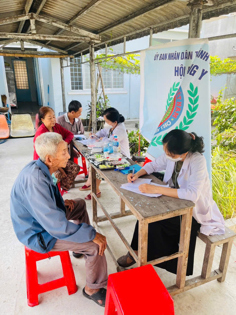Đoàn khám từ thiện gồm các Bác sĩ và mạnh thường quân đến khám từ thiện tại xã Xuân Hòa, Kế sách, Sóc Trăng