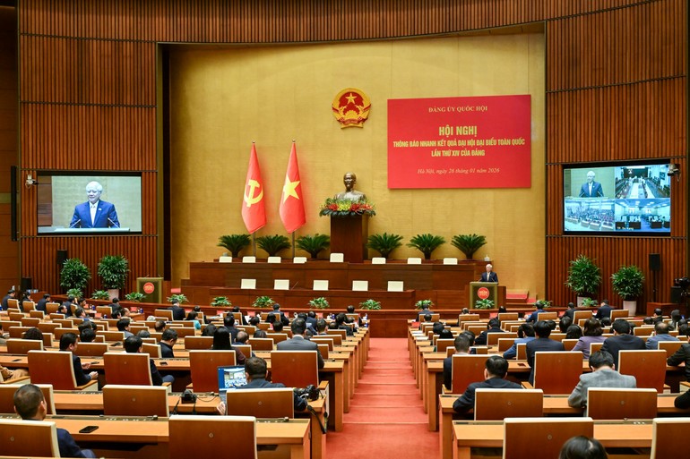 Chiều nay 26/1, tại Nhà Quốc hội, ngay sau Đại hội đại biểu toàn quốc lần thứ XIV của Đảng kết thúc rất tốt đẹp, đồng chí Trần Thanh Mẫn, Ủy viên Bộ Chính trị, Bí thư Đảng ủy, Chủ tịch Quốc hội chủ trì Hội nghị thông báo nhanh kết quả Đại hội đại biểu toàn quốc lần thứ XIV của Đảng.